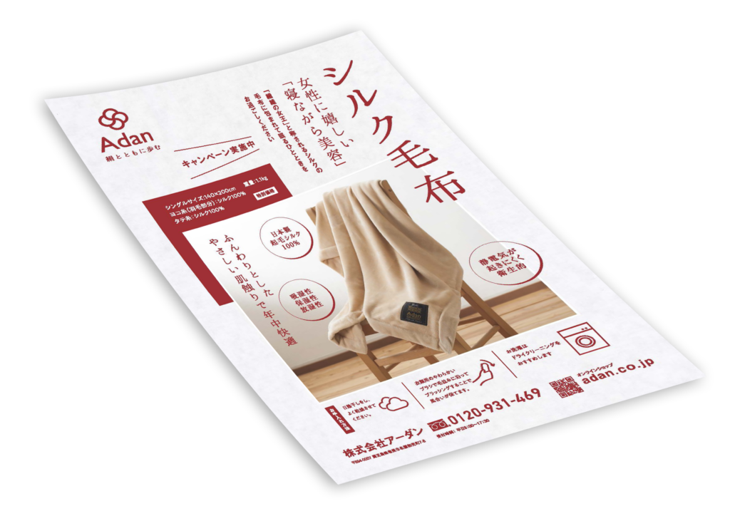 シルク毛布の販促物です。